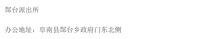 提示:阜阳阜南县郜台派出所地址和联系电话号码信息来源于阜南县政府网站公开之内容,整理转载此文是出于传递更多便民服务信息之目的。若有来源标注错误或者其它差错或侵犯了您的合法权益,请与本网站联系,我们将及时更正、删除,谢谢。