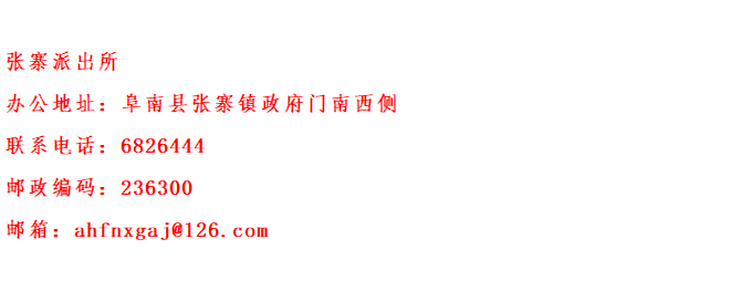 阜南县张寨镇张寨派出所联系电话地址及邮箱邮编信息公开: