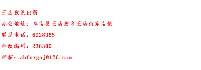 政府便民服务信息公开:阜南县王店孜派出所联系电话及地址。