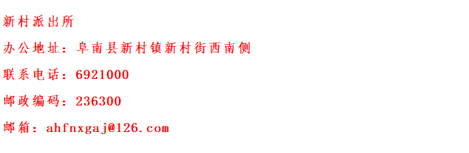 阜南县新村派出所联系方式(电话地址邮箱邮编)信息公开: