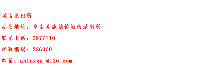 便民信息:阜阳阜南县城南派出所联系电话和办公地址。