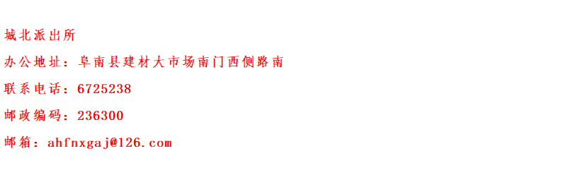 便民信息:安徽阜南县城北派出所联系电话及办公地址: