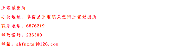 阜南县王堰派出所联系电话和联系邮箱是多少: