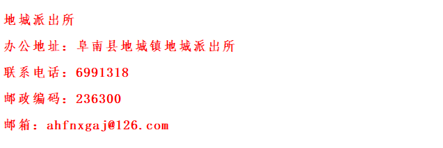 提示:阜南县地城镇地城派出所联系电话号码信息来源于阜南县政府网站公开之内容,整理转载此文是出于传递更多便民服务信息之目的。若有来源标注错误或者其它差错或侵犯了您的合法权益,请与本网站联系,我们将及时更正、删除,谢谢。