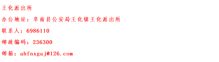阜南县王化镇王化派出所联系邮箱和联系电话信息公开: