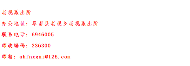信息公开:阜南县老观派出所联系电话和邮箱。