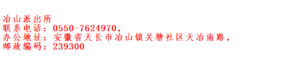 便民信息:天长市冶山派出所咨询联系电话和通讯地址。