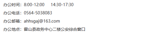 霍山县衡山派出所户籍业务咨询服务电话号码: