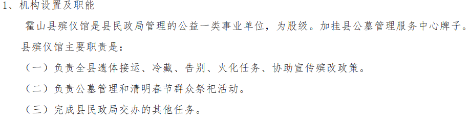 提示:霍山县殡仪馆联系电话及地址信息来源于霍山县政府网站公开之内容,整理转载此文是出于传递更多便民服务信息之目的。若有来源标注错误或者其它差错或侵犯了您的合法权益,请与本网站联系,我们将及时更正、删除,谢谢。