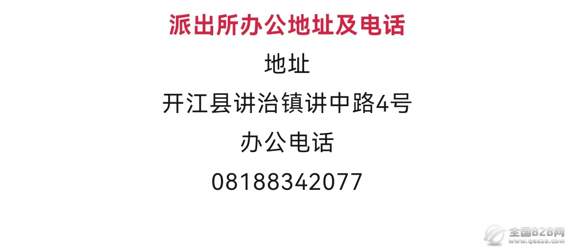 开江县讲治派出所办公地址和电话号码信息公开: