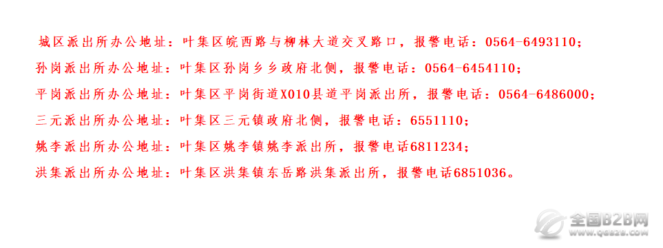 六安市叶集区辖区派出所值班报警电话和办公地址: