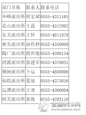 提示:含山县辖区派出所联系电话号码大全表信息来源于含山县政府网站公开之内容,整理转载此文是出于传递更多便民服务信息之目的。若有来源标注错误或者其它差错或侵犯了您的合法权益,请与本网站联系,我们将及时更正、删除。以上内容如有变更,以相关部门的更新内容为主。谢谢。