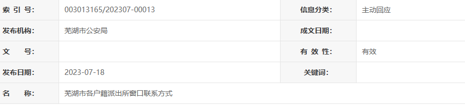提示:芜湖市各户籍派出所窗口联系方式(咨询电话和办公地址)大全表信息来源于芜湖市政府网站公开之内容,整理转载此文是出于传递更多便民服务信息之目的。若有来源标注错误或者其它差错或侵犯了您的合法权益,请与本网站联系,我们将及时更正、删除。以上内容如有变更,以相关部门的更新内容为主。谢谢。