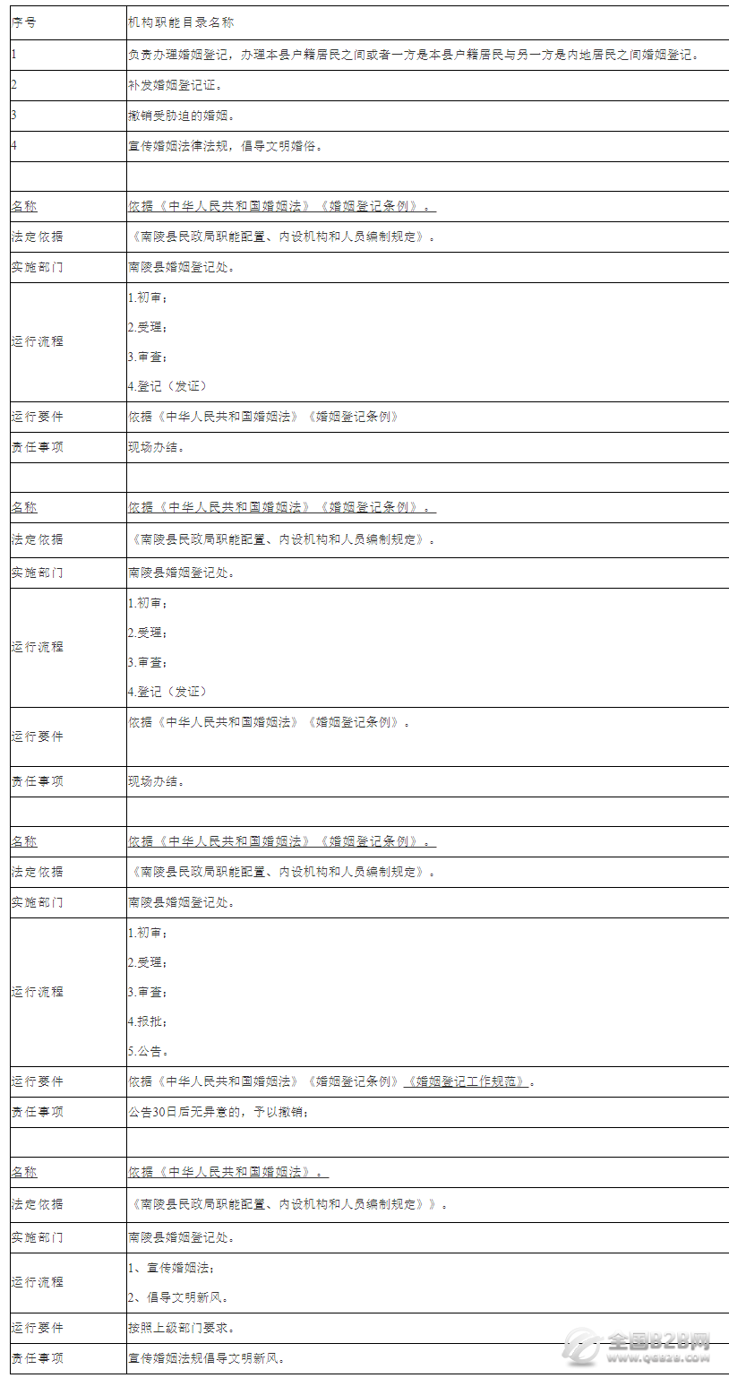 (一)负责办理婚姻登记,办理本县户籍居民之间或者一方是本县户籍居民与另一方是内地居民之间婚姻登记;