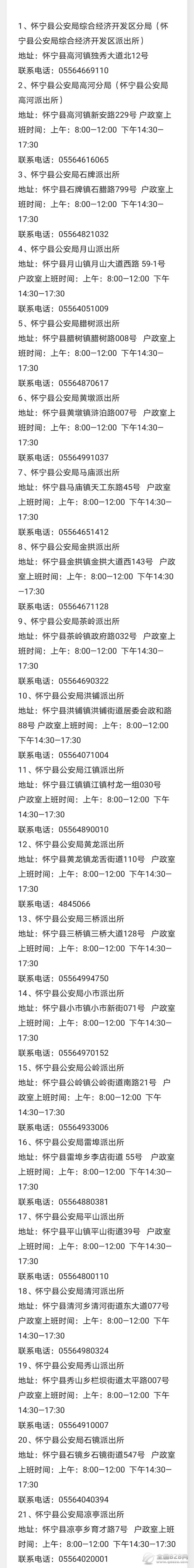 安徽省怀宁县辖区派出所对外联系电话和办公地址信息大全表:为了更好服务经济发展和人民生活,进一步转变作风,提高履职水平,提升人民群众满意度,现将怀宁县辖区派出所联系电话及地址整理并公开如下: