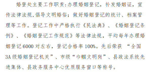 提示:安徽太湖县民政局婚姻登记处办公电话及地址信息来源于太湖县政府网站公开之内容,整理转载此文是出于传递更多便民服务信息之目的。以上信息仅供参考,由于时间及其他方面的原因可能会发生变动,不准确之处请原谅!若有来源标注错误或者其它差错或侵犯了您的合法权益,请与本网站联系,我们将及时更正、删除。以上便民信息内容如有变更,以相关部门的更新内容为主。谢谢。