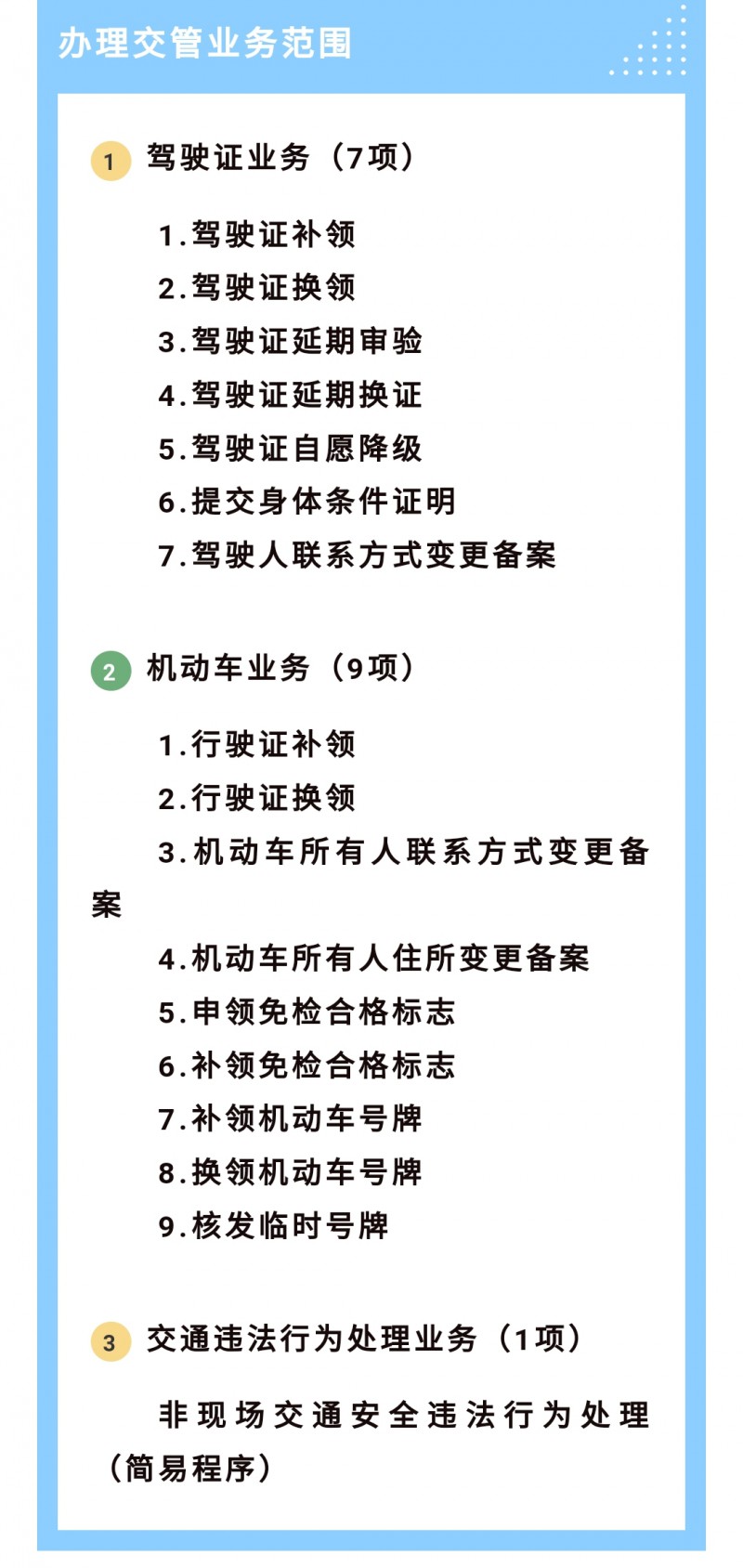 为全面深化“放管服”改革工作,进一步提升政务服务水平,切实为群众提供便利办事条件,按照持续深化“微改革·微创新”活动统一部署,达州市决定将部分交通管理业务延伸至全市39个派出所办理。