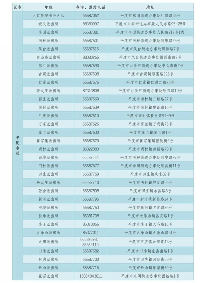 2,山东青岛平度市辖区派出所户籍户政业务窗口咨询预约电话号码汇总表