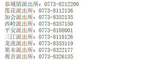 声明:关于恭城县各派出所值班电话号码的信息作出免责声明,本信息仅为提供便民服务目的而发布,相关信息来源于桂林市恭城县主管机构网站之公开内容。本信息仅作参考,信息的准确性和完整性在此不作任何保证,也不保证所包含的信息和建议不会发生任何变更,我们仅对公开资料中的内容做原文提取或者整理转载。虽然已力求信息的客观完整,但随着时间与其它情况发生,难免信息出现差错或者变更。如果出现差错或者侵犯了您的权利,请通知本网站客服,我们将及时更正或者删除。谢谢。
