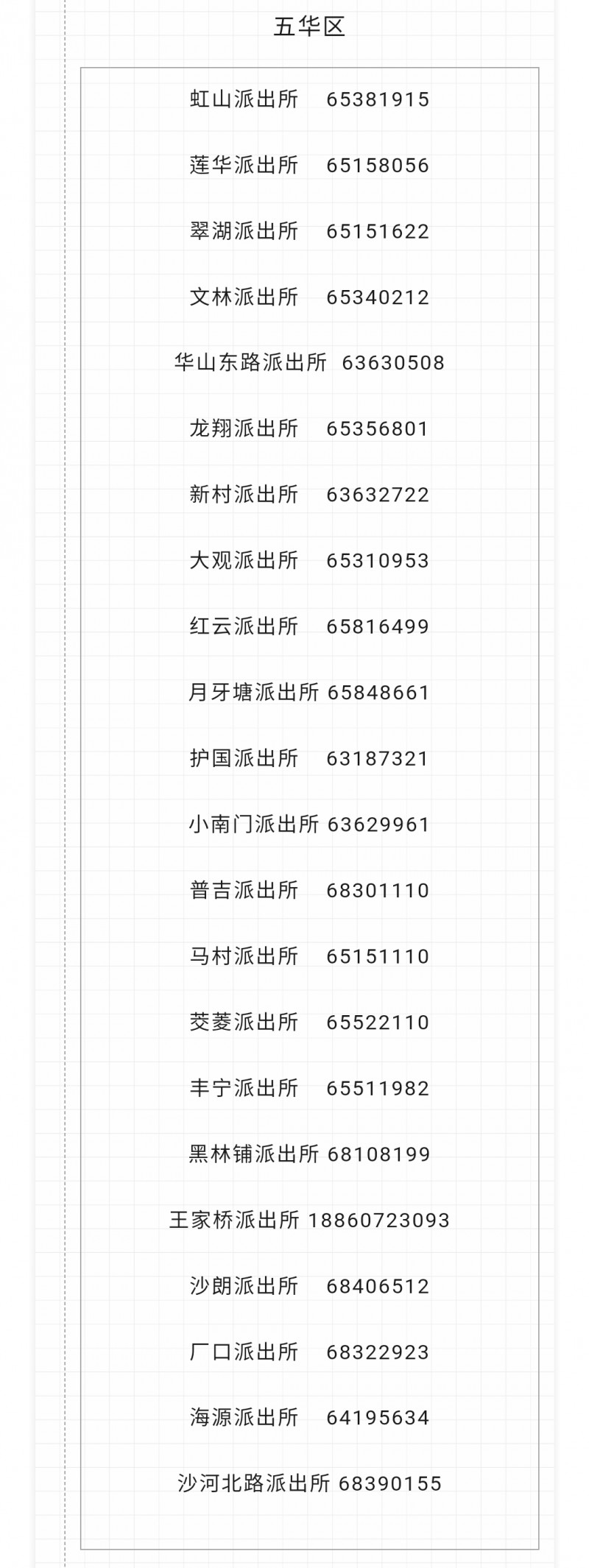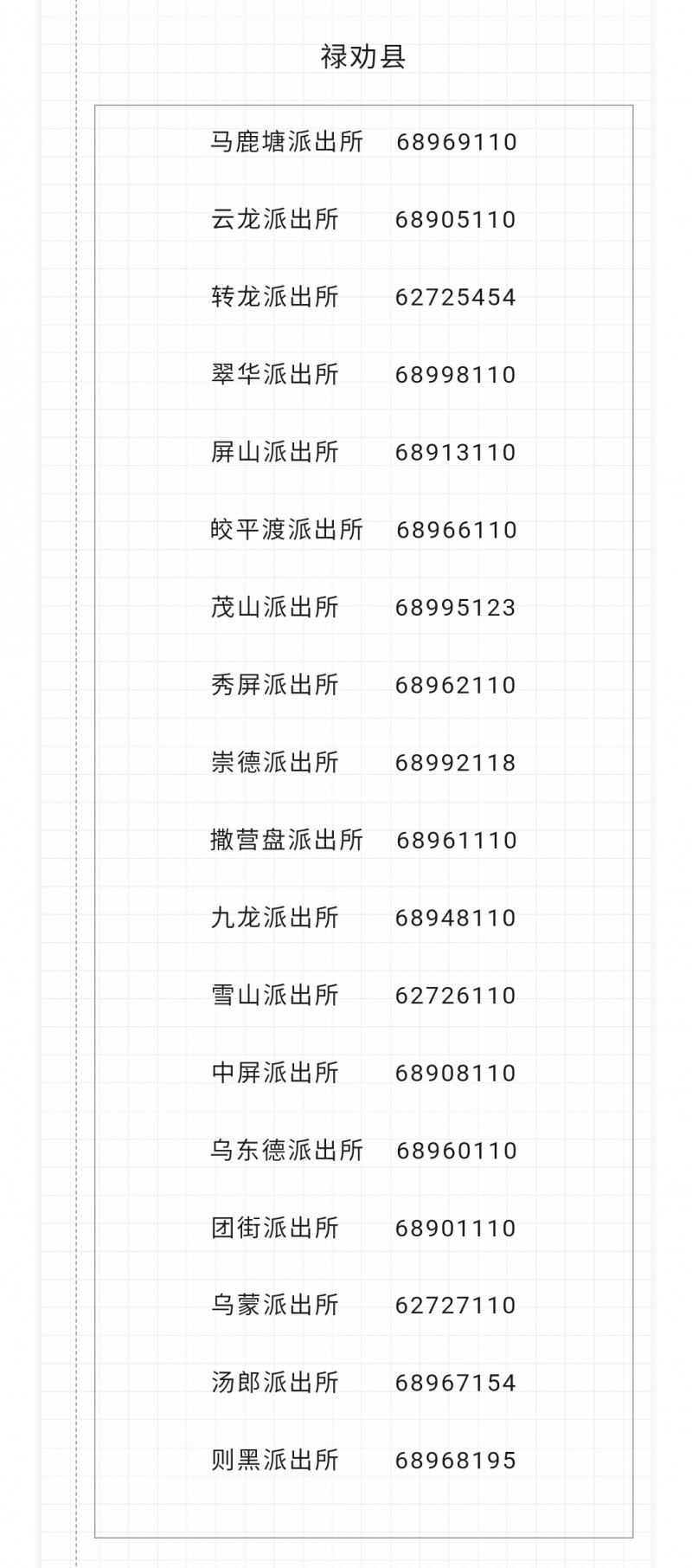 昆明市(区市县)辖区各派出所户政窗口咨询电话号码汇总表: