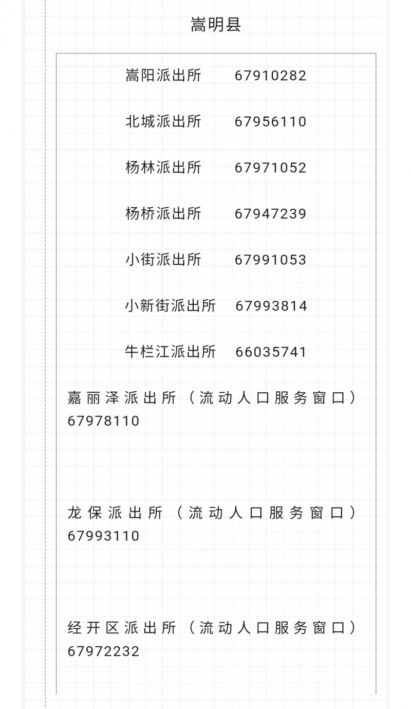 3昆明市崇明县辖区各派出所户政窗口咨询电话号码汇总表:
