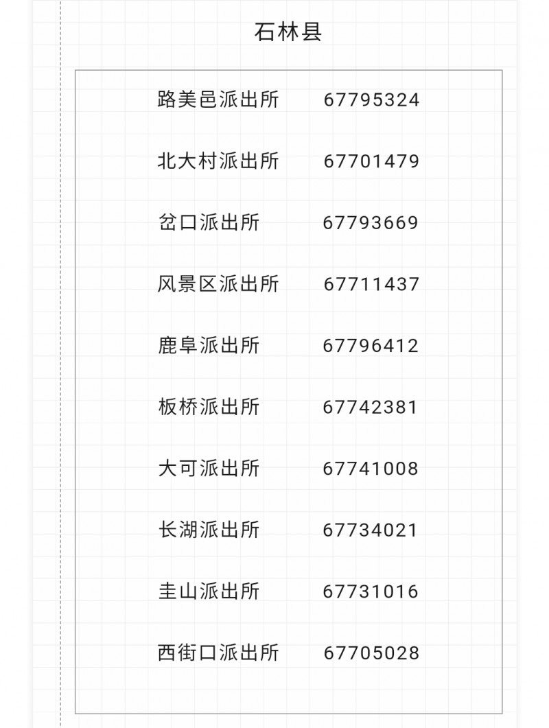 5昆明市石林县辖区各派出所户政窗口咨询电话号码汇总表: