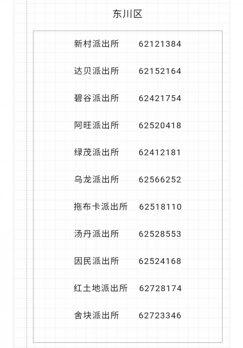 7昆明市东川区辖区各派出所户政窗口咨询电话号码汇总表: