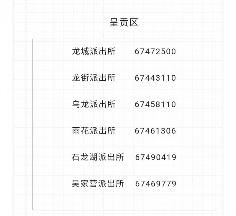 12昆明市呈贡区辖区各派出所户政窗口咨询电话号码汇总表:
