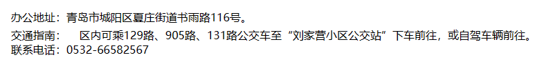 办公地址:青岛市城阳区夏庄街道书雨路116号。