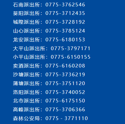 提示:关于兴业县辖区派出所联系电话号码大全表的信息作出免责提示,本信息发布的目的仅为向公众提供更多的便民利民服务,是建立在公共服务信息基础上的公益信息传播,其信息来源于当地主管机构的公开内容。信息不排除因随着时间或者相关情况发生原因而发生变化变更,所以本信息仅作参考。