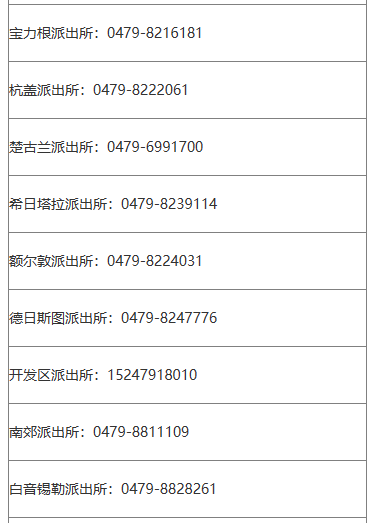 锡林浩特市辖区派出所对外公开电话号码汇总表: