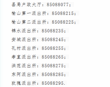 济南平阴县辖区派出所户政窗口服务电话号码汇总表:榆山第一派出所;榆山第二派出所;锦水派出所;安城派出所;孔村派出所;孝直派出所;洪范派出所;东阿派出所;玫瑰派出所。