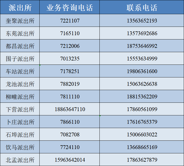 山东潍坊昌邑市各派出所户籍业务联系电话大全表:深入践行“靠前一步、主动作为”服务理念,持之以恒转作风、全力以赴抓落实,不断优化营商环境,深化“放管服”改革,营造风清气正的良好环境,形成推动高质量发展的强大合力。山东潍坊昌邑市向社会公布昌邑市辖区各派出所户籍业务联系电话。