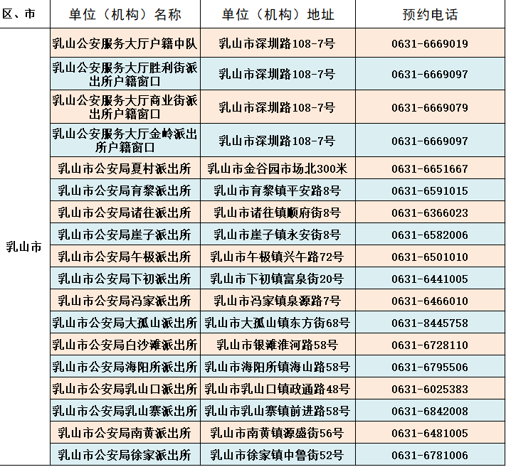 提示:关于乳山市辖区派出所户籍窗口咨询预约电话和办公地址大全表的信息作出免责提示,1,信息的源处为当地政府主管部门公开之内容,在这里整理及转发的唯一目的是为社会提供更多的便民利民网络信息。互联网的存在,让我们多了一个方便快捷的信息渠道,也是公共服务信息发布的渠道。