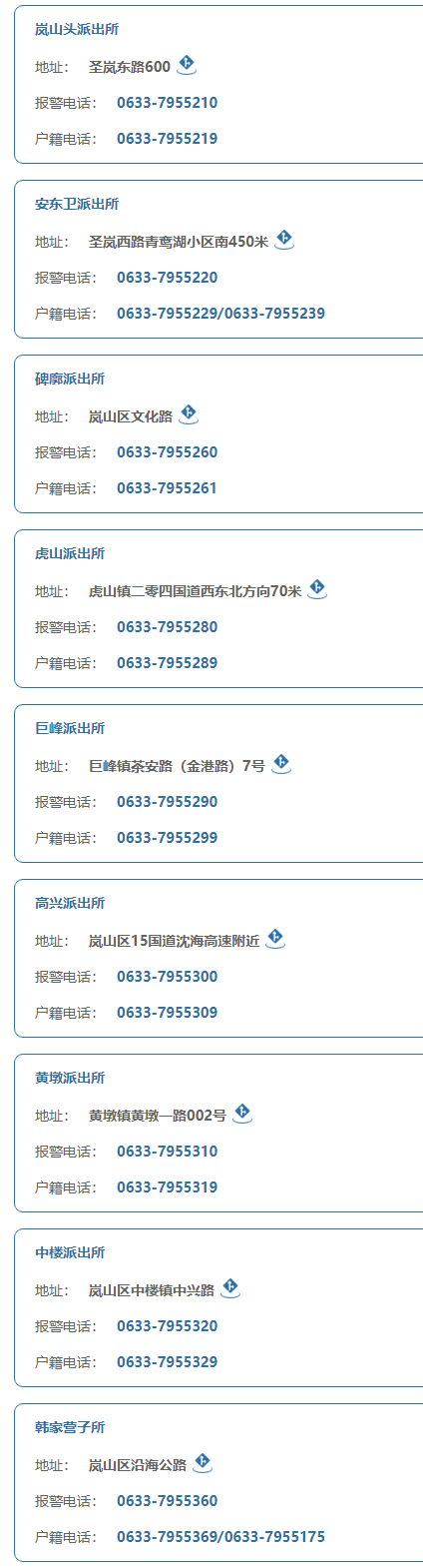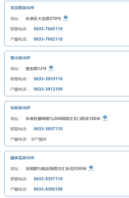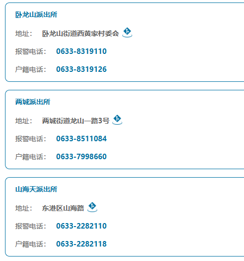 日照市(区县)辖区各派出所报警值班电话、户籍窗口电话和办公地址大全: