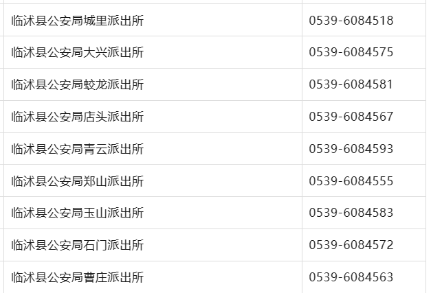 临沂临沭县各派出所户政窗口业务咨询预约电话号码汇总表:临沭县城里派出所 、临沭县大兴派出所 、临沭县蛟龙派出所 、临沭县店头派出所、 临沭县青云派出所、 临沭县郑山派出所 、 临沭县玉山派出所 、临沭县石门派出所 、临沭县曹庄派出所