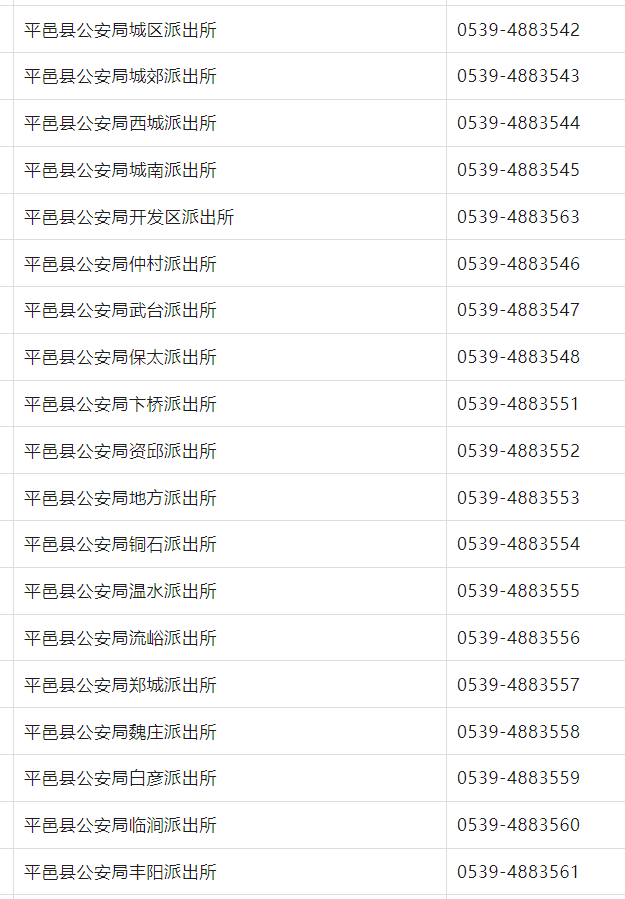 山东临沂市平邑县辖区各派出所户政户籍窗口业务咨询预约电话大全表: