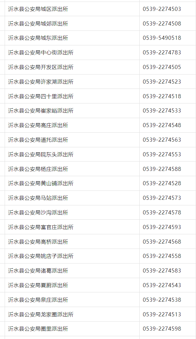 山东临沂市沂水县辖区各派出所户政户籍窗口业务咨询预约电话大全表: