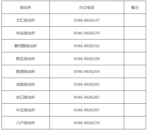 声明:关于东营市东营区各派出所户籍室办公电话汇总表的信息作出免责声明,1,信息的源处为东营市东营区政府主管部门网站公开之内容,在这里整理及转发的唯一目的是为社会提供更多的便民利民网络信息。互联网的存在,让我们多了一个方便快捷的信息渠道,也是公共服务信息发布的渠道。