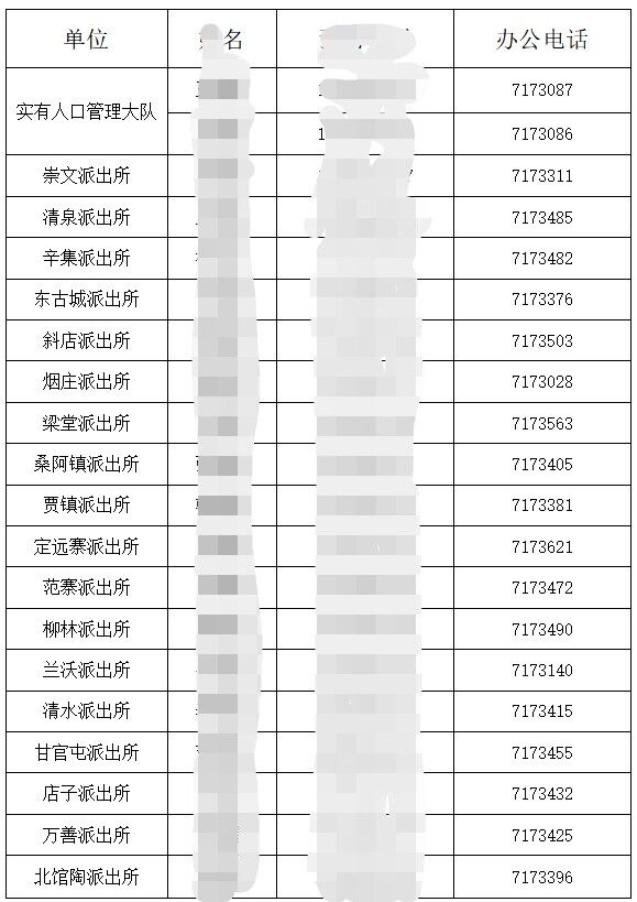 聊城冠县辖区派出所户政窗口咨询预约服务电话汇总表: