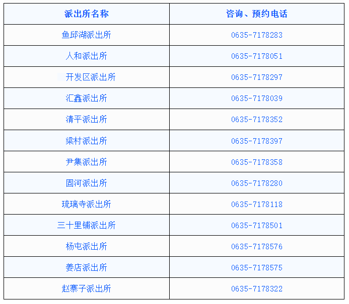 山东高唐县辖区派出所户籍窗口业务咨询预约电话号码大全表:为进一步推进派出所户籍业务“放管服”改革和“四个通办”改革,高唐县辖区派出所户政部门深入践行为民初心,不断拓展服务范围,深入落实便民利民为民举措,为此把高唐县辖区派出所户籍窗口业务咨询预约电话号码进行汇总,向社会公布,以便为人民群众提供更加优质便捷高效的服务。