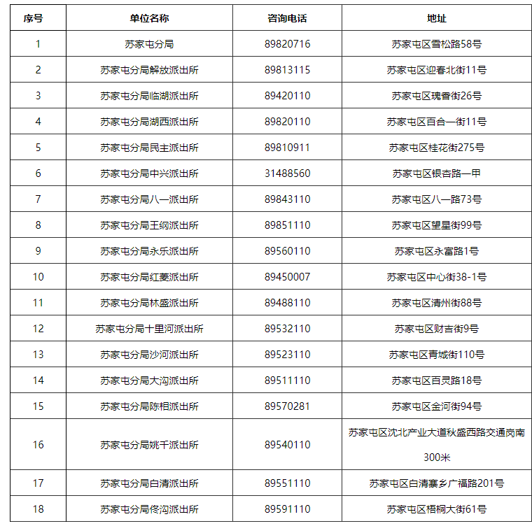 沈阳市苏家屯区辖区派出所名称、联系电话号码及单位地址信息明细表:努力为广大市民提供更专业、更高效、更细致的服务,不断提升群众安全感和满意度,沈阳市苏家屯区辖区派出所决定把联系电话和办公地址信息进行汇总并向社会公布。