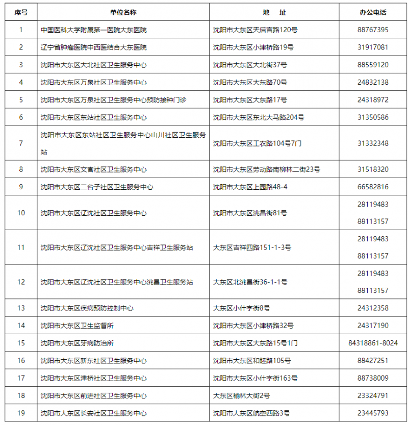 沈阳市大东区辖区社区医院(社区卫生服务中心)单位地址及办公电话汇总表:沈阳市大东区辖区有多少个社区卫生服务中心,每个社区医院地址在哪里,每个社区卫生服务中心(社区医院)的对外联系电话是多少?请看沈阳市大东区辖区社区卫生服务中心(社区医院)地址电话汇总表。