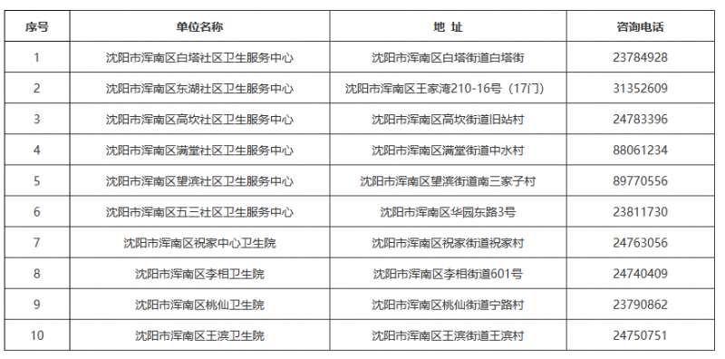 便民信息黄页:沈阳市浑南区各社区医院、卫生院地址电话汇总表。