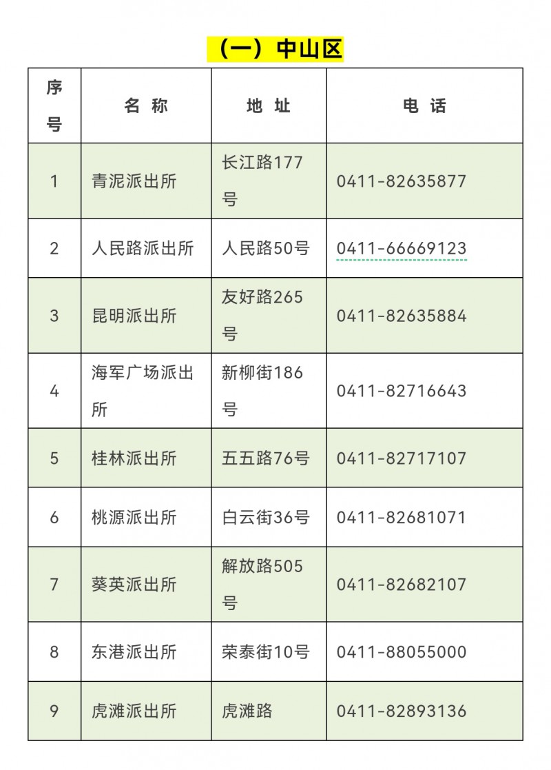 一,辽宁大连市中山区辖区各派出所电话及地址信息汇总表: