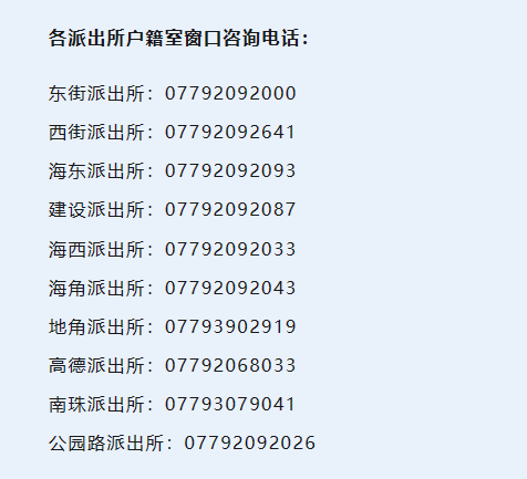 说明:关于鞍山海城市各派出所户籍室窗口咨询联系电话号码汇总表的信息作出免责说明,1,信息的源处为当地政府主管部门公开之内容,在这里整理及转发的唯一目的是为社会提供更多的便民利民网络信息。互联网的存在,让我们多了一个方便快捷的信息渠道,也是公共服务信息发布的渠道。