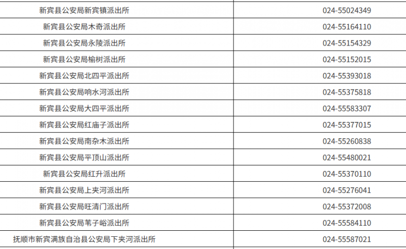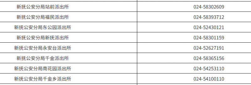 辽宁抚顺市新抚区辖区各派出所机构对外联系电话号码大全表: