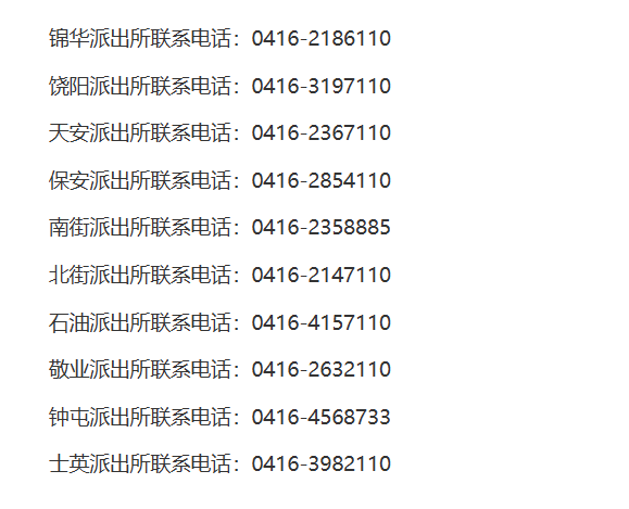 便民电话黄页:锦州市古塔区辖区派出所联系电话号码汇总表。