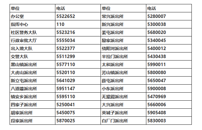 便民电话黄页:辽宁黑山县辖区派出所办公电话号码大全表。