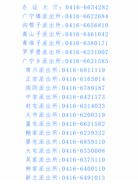 北镇市各派出所办理身份证(户籍)咨询公开服务电话大全表: